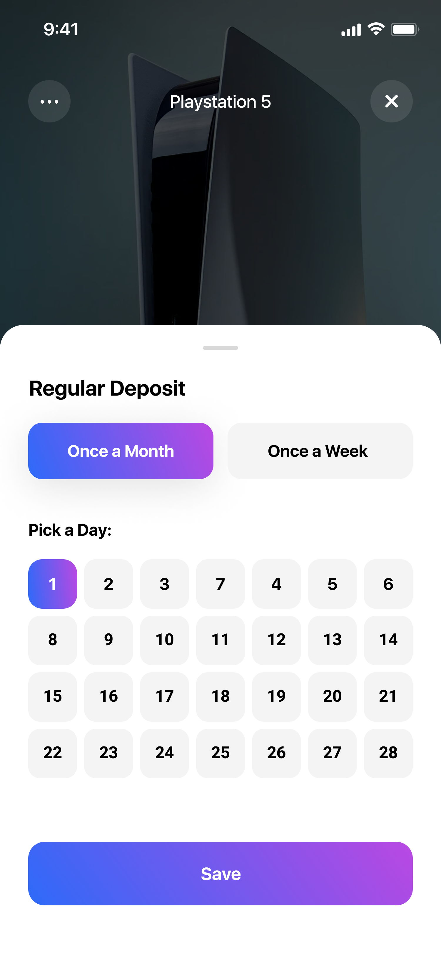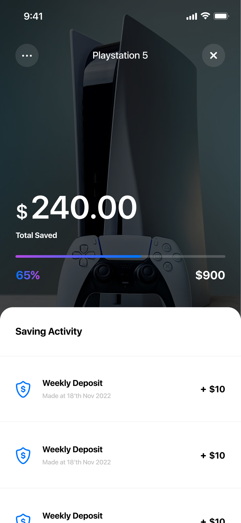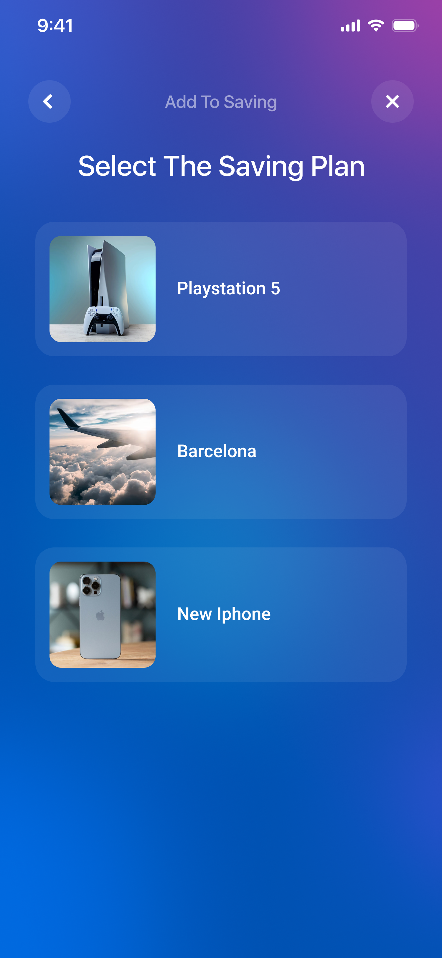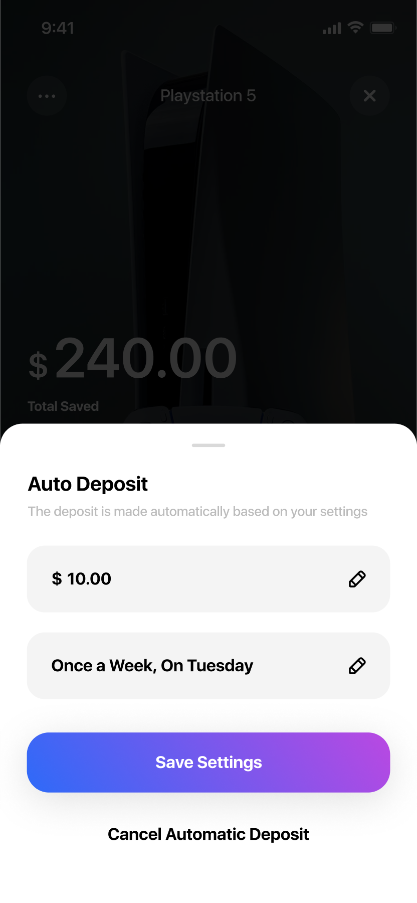 The Saving Plan area allows the user to easily track and manage their savings goals. The user can view all key details of each plan, including the goal amount, current progress, and a complete history of transactions. To encourage consistent saving, the user can set up automatic recurring deposits. Additionally, the app leverages AI to generate a personalized theme image for each plan, making the experience more vivid and motivating the user to stay engaged with their financial goals.